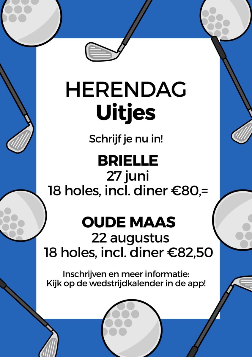Diegenen die nog nooit aan een Herendag hebben deelgenomen, raden we aan daar beslist een keer mee kennis te maken! Het is niet alleen erg gezellig, maar je golfspel en regelkennis gaan door mee te spelen met sprongen vooruit. Er wordt serieus gespeeld, het gaat er vaak spannend aan toe, maar gezelligheid staat altijd voorop!